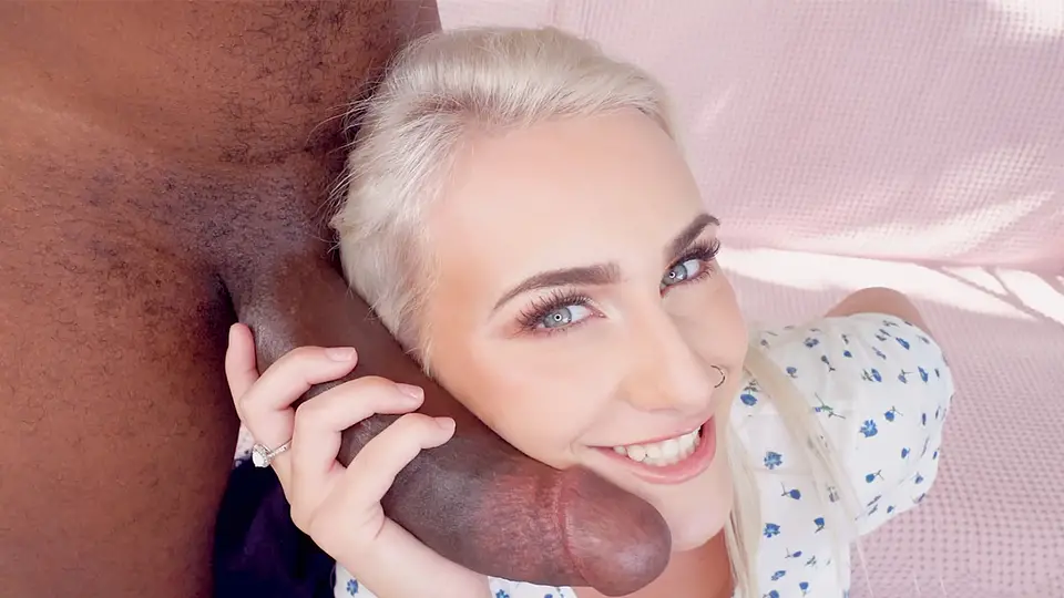 Brickzilla and Indica Monroe are tryst up for the first-ever-ever time & the blue-spotted platinum-towheaded is wearing a sundress and she is astonished by the size of that BIG BLACK COCK.