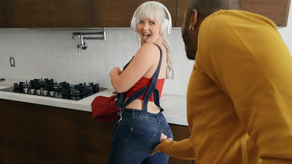 BIG BLACK COCK is ravaging curvy platinum-ash-blondie bisexous-atch in the kitchen